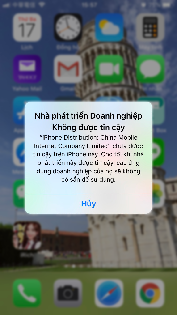 2. Mở ứng dụng, làm theo hướng dẫn từ hệ thống không chọn mục Trust, chọn Cancel